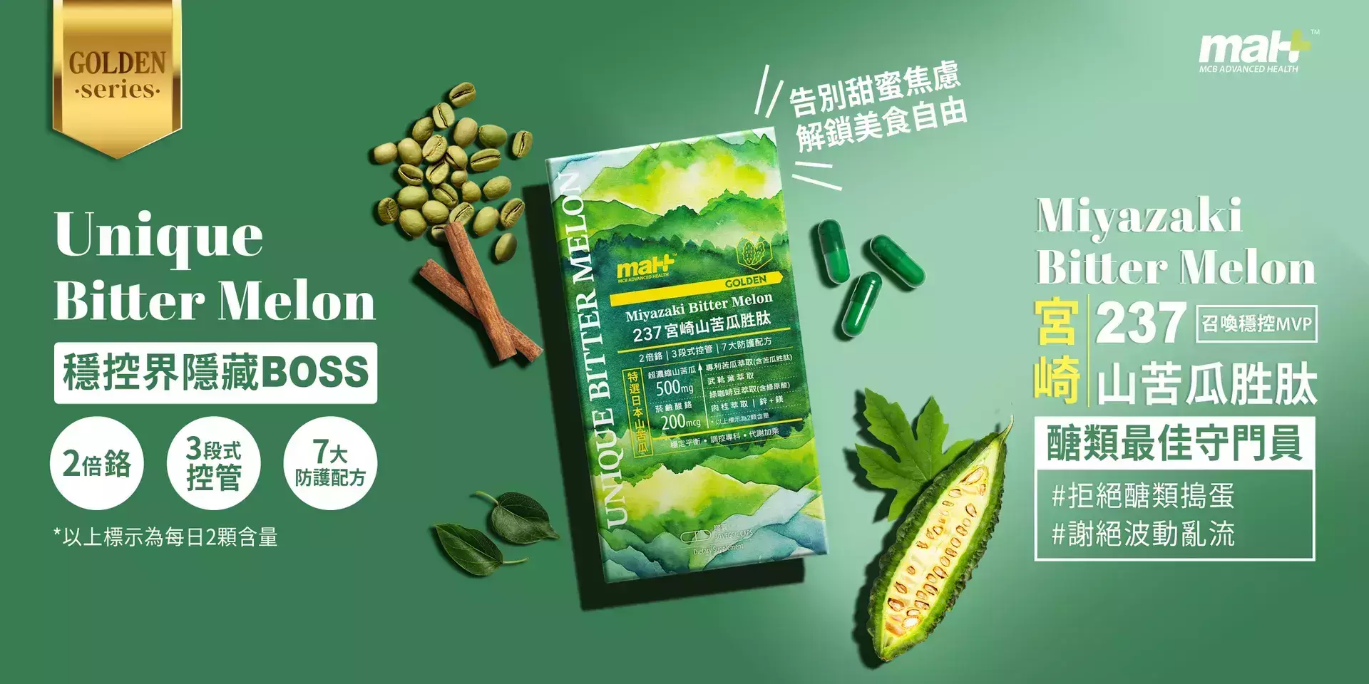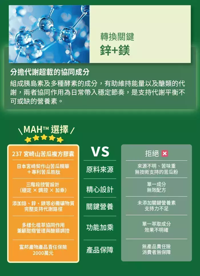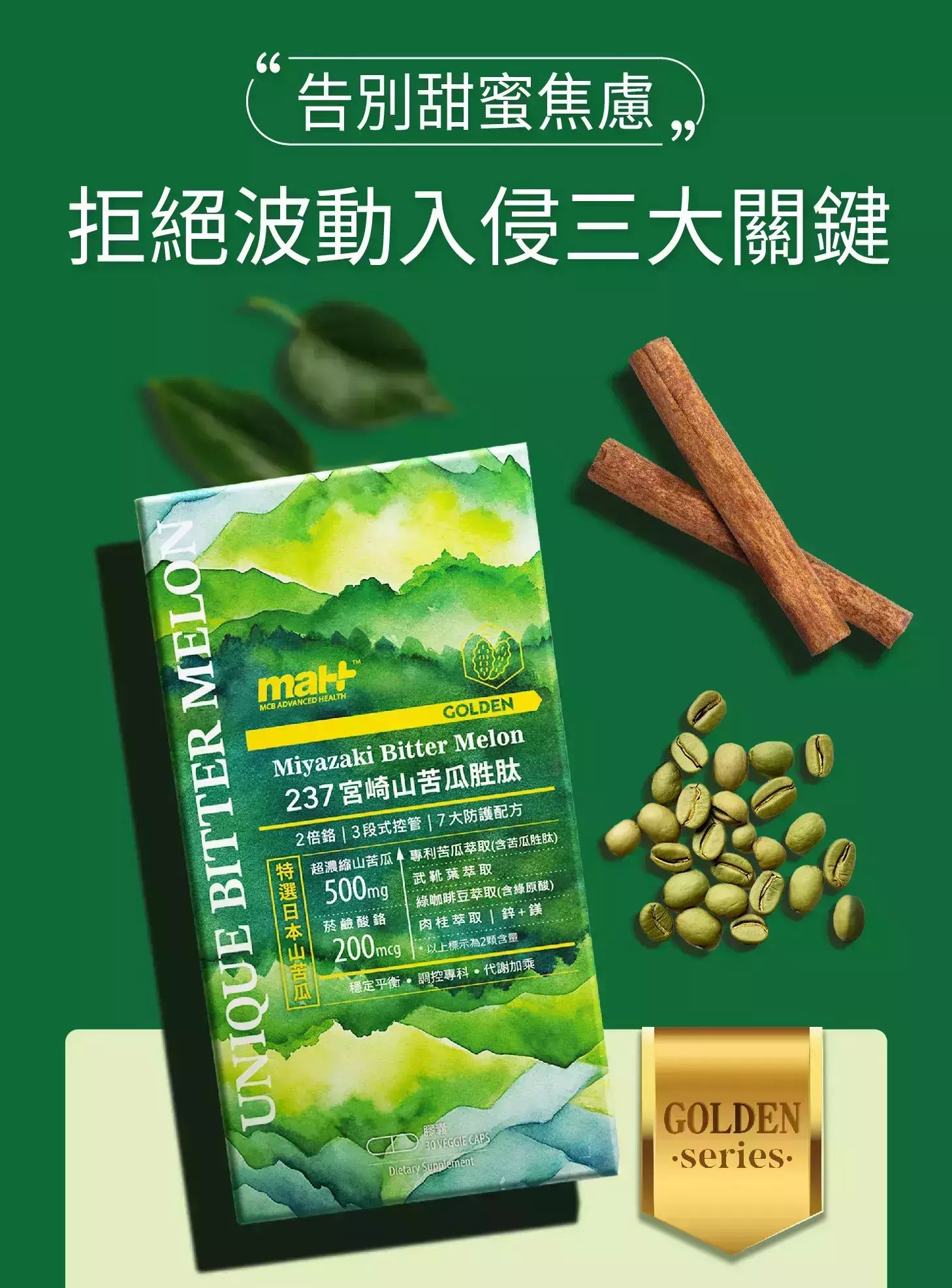 ✔ 穩定平衡|宮崎山苦瓜+專利山苦瓜胜肽+武靴葉。