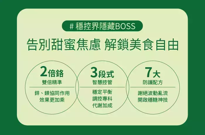 拒絕醣類搗蛋,告別甜蜜焦慮。穩健人生好幫手,拒絕代謝亂流,輕鬆打退糖鼓,吃貨終極外掛,秒開穩糖神技。