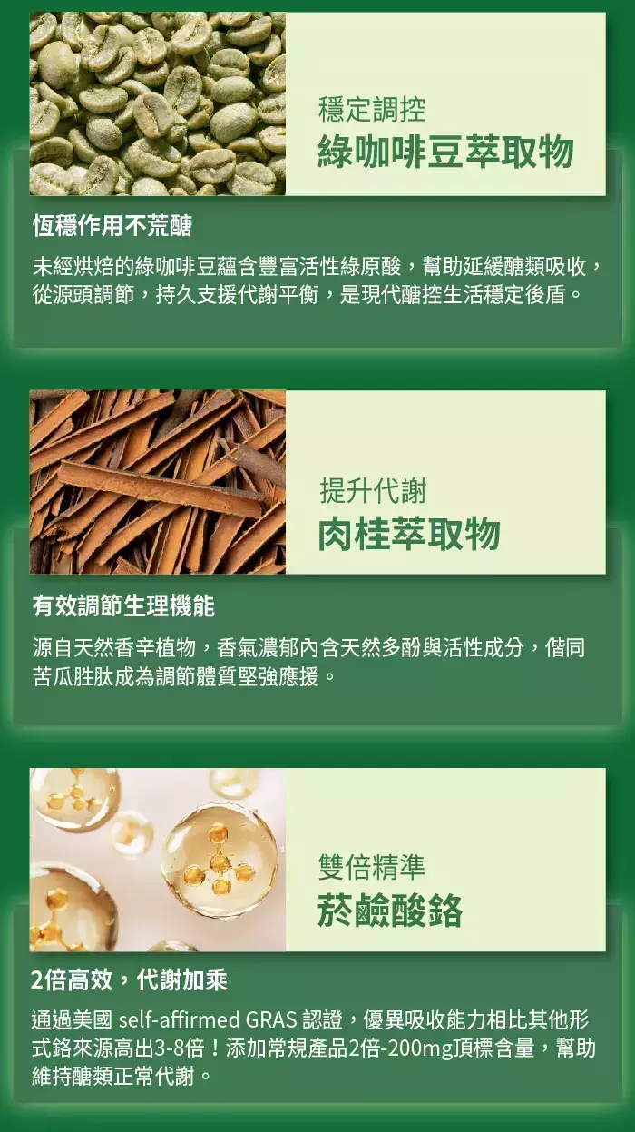✔ 調控專科|肉桂+綠咖啡豆萃取。